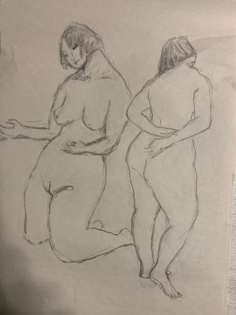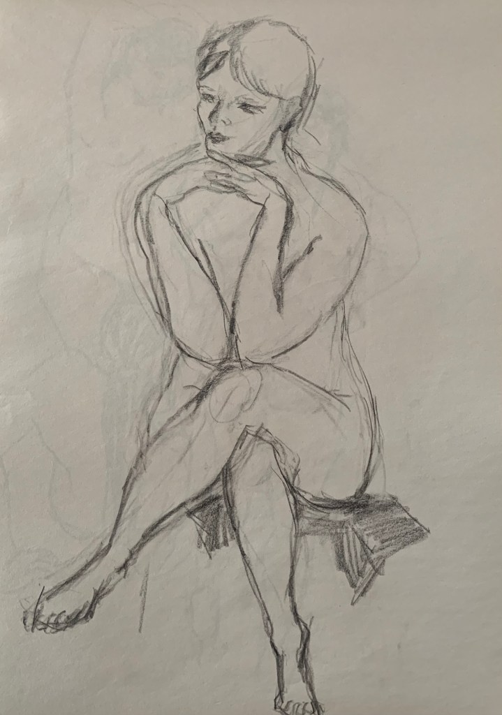 モデルさんは3度目でとてもポーズも体の均整も取れていて描きやすい方でした。